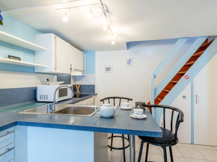 3-Zimmer-Reihenhaus 40 m2 auf 2 Stockwerken. Zweckmässig und schön eingerichtet: Wohn-/Esszimmer mit TV (Flachbildschirm), Klimaanlage. Ausgang zur Loggia. 1 Zimmer mit 1 franz. Bett (140 cm, Länge 190 cm). Kochnische (Geschirrspüler, 3 Induktionskochplatten, Toaster, Mikrowelle, Tiefkühler, elektrische Kaffeemaschine, Kombinationsmikrowelle). Dusche/WC. Obergeschoss: (steile Treppe) 1 Zimmer mit 1 franz. Bett (140 cm, Länge 190 cm), Klimaanlage. Elektrogrill, Loggia. Zur Verfügung: Waschmaschine. Internet (Wireless LAN, gratis). Bitte beachten: Rauchmelder.