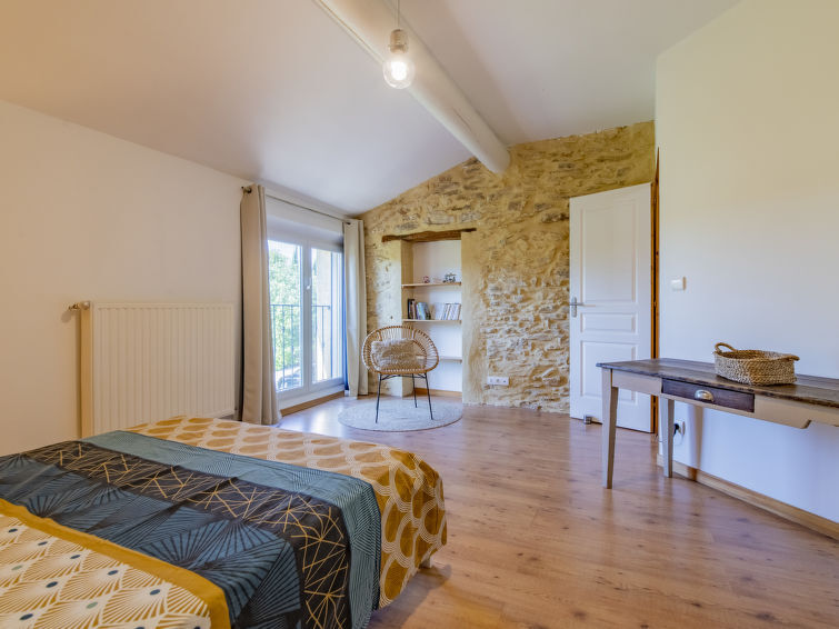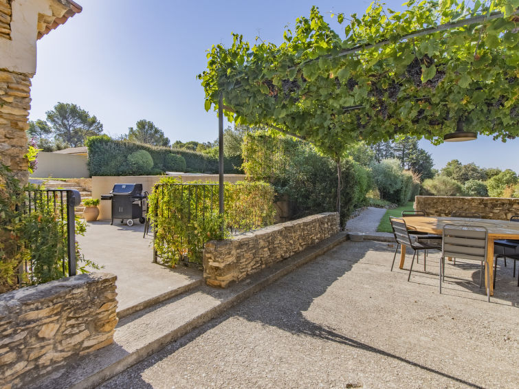 Mas/Landhaus "Le Mas des Buis", renoviert im Jahre 2016. Im Ort, 1.5 km vom Zentrum von Uchaux. Zur Alleinbenutzung: Grundstück 4'500 m2 (eingezäunt), Schwimmbad (10 x 5 m, 140 - 140 cm tief, saisonale Verfügbarkeit: 01.Jun. - 30.Sep.). Wäschewechsel 1 mal wöchentlich. Handtuchwechsel 1 mal wöchentlich. Wohnungsreinigung 1 mal wöchentlich (inkl.). Parkplatz auf dem Grundstück. Einkaufsgeschäft 1.5 km, Supermarkt 5 km, Restaurant 500 m, Bäckerei 150 m, Bushaltestelle "Centre Serignan du Comtat" 4.3 km. Nahe gelegene Sehenswürdigkeiten: Orange 8 km, Vaison la Romaine 32 km, Avignon 41 km, Mont Ventoux 62 km. Bitte beachten: Fahrzeug empfohlen. Geeignet für Familien. Pool-Haus von 80m² mit kompletter Sommerküche (Kühlschrank, Kochplatten, Grill) und WC.