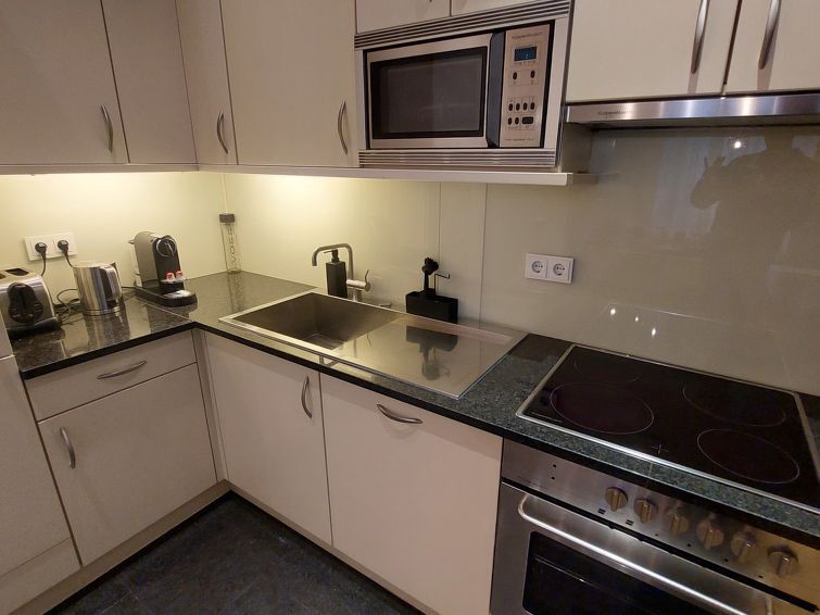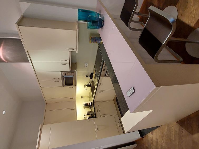 2-Zimmer-Wohnung 70 m2 im 3. Stock. Sehr modern und stilvoll eingerichtet: Eingang. Wohn-/Esszimmer mit 1 Ausziehbett (2 Pers. 2 x 80 cm, Länge 200 cm), Esstisch und Flachbildschirm. 1 Doppelzimmer mit Ventilator. Offene Küche (Backofen, Geschirrspüler, 4 Glaskeramikplatten, Toaster, Wasserkocher, Mikrowelle, Tiefkühler, elektrische Kaffeemaschine, Kapseln für die Kaffeemaschine (Nespresso)) mit kleiner Bar. Dusche/WC. Parkettboden. Zur Verfügung: Waschmaschine, Bügeleisen, Haartrockner. Internet (WLAN, gratis). Bitte beachten: Nichtraucher-Unterkunft. Check In: 16.00 bis 20.00 Uhr (spätere Anreise gegen Kostenersatz möglich) . Check out: bis 10.00 Uhr.
