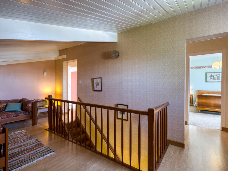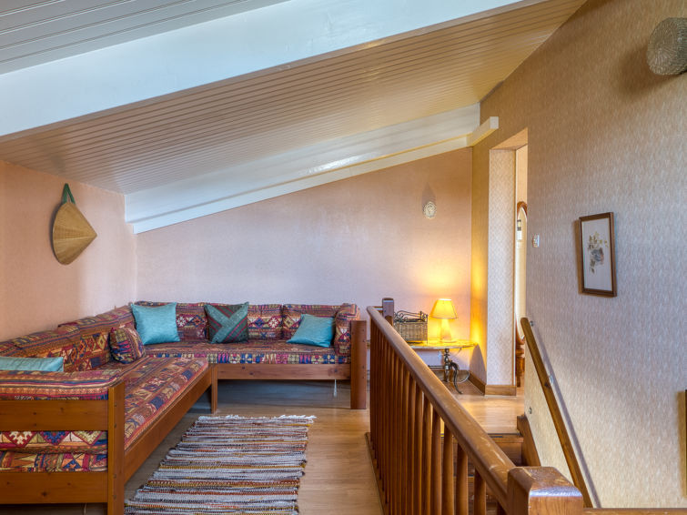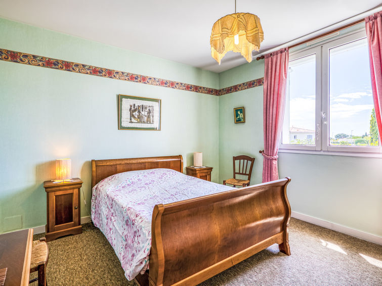 Huis 5-kamers 155 m2 op 2 verdiepingen. Ruim: woon-/eetkamer met TV (Flatscreen TV). Uitgang naar de tuin, naar het terras. 1 kamer met 2 bedden (80 cm, lengte 190 cm). Keuken (3-pits kookplaat, oven, broodrooster, waterkoker, magnetron, diepvriezer, elektrische koffiemachine). Douche, aparte WC. Elektrische verwarming, air-conditioning. Bovenverdieping: 1 kamer met 1 2-pers bed (1 x 140 cm, lengte 190 cm). 1 kamer met 2 bedden (80 cm, lengte 190 cm), wastafel en douche. 1 kamer met 1 2-pers bed (140 cm, lengte 190 cm), wastafel en bidet. Badkamer. Terrasmeubelen, barbecue. Ter beschikking: wasmachine, kinderstoel, kinderbed. Internet (WiFi, gratis). Parkeerplaats (2 Auto's), garage (1 Auto). Maximaal 1 huisdier/hond toegestaan. Rookmelders.