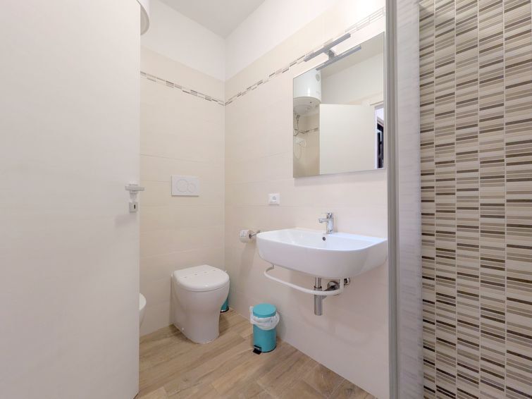 Appartement 3-kamers 60 m2 op 2 verdiepingen, op de begane grond. Licht, doelmatig en modern ingericht: woon-/slaapkamer met 1 2-pers divanbed, eettafel en Digitale TV. Open keuken (4 kookpitten (vlammen), magnetron, diepvriezer, elektrische koffiemachine). Bovenverdieping: 1 2-pers. kamer. 1 kamer met 2 bedden. Douche/bidet/WC. Air-conditioning, heteluchtverwarming. Balkon, terras overdekt. Terrasmeubelen, barbecue. Uitzicht op het zwembad. Ter beschikking: kluis, kinderbed tot 2 jaar (extra). Parkeerplaats (overdekt, 1 Auto). 1 huisdier/hond toegestaan. Privé ingang. Bedindeling is flexibel. Er zijn meer slaapmogelijkheden beschikbaar dan het maximaal toegestane aantal personen dat echter niet mag worden overschreden. IT027034B4R2S2DB5J