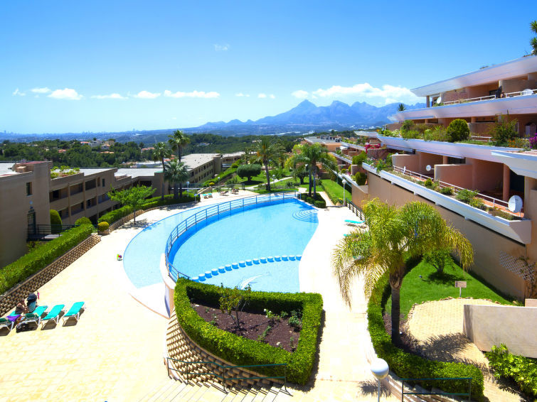 Sierra de Altea: Mooi flatgebouw "Altea La Nova". 2.2 km van het centrum van Altea la Vieja, 6 km van het centrum van Altea, zonnige, verhoogde ligging, gebied met weinig verkeer, 3.5 km van zee, 3.5 km van het strand. Voor medegebruik: terrein (omheind), tuin met gazon, 2 zwembaden (seizoensgebonden beschikbaarheid: 01.Mei. - 30.Sep.) met trap. Kinderzwembad, buitendouche, terras. In het huis: receptie, lift. Winkel 2.2 km, levensmiddelenwinkel 2.2 km, supermarkt 2.2 km, restaurant 3 km, bar 2.2 km, bakkerij 2.2 km, café 2.2 km, internet cafe 2.2 km, voetgangersgebied 2.2 km, fietsverhuur 2.2 km, biertuin 2.2 km, centrum te voet bereikbaar in 33 minuten, bushalte 1.8 km, zandstrand "Playa Puerto Blanco -Calpe-" 12 km, baai 5 km. Jachthaven 7 km, jachthaven 7 km, golfterrein (9 holes) 1 km, surfschool 7 km, zeilschool 7 km. Attracties in de buurt: Aqualandia 20 km, Mundomar 20 km, Terra Mitica 25 km, Terra Natura 25 km, Fuentes del Algar 22 km, Guadalest 25 km. Wandelgebied Peñon de Ifach 15 km. De eigenaar accepteert geen jeugdgroepen.