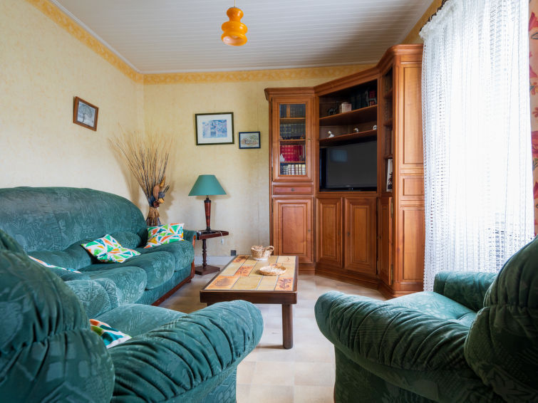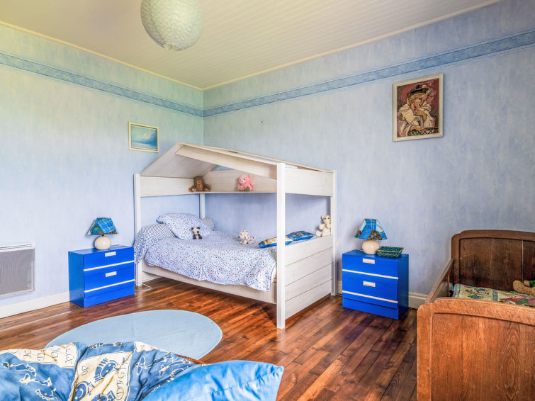 Huis 5-kamers 110 m2 op 2 verdiepingen. Comfortabel en mooi ingericht: woon-/eetkamer 25 m2 met TV (Flatscreen TV), houtkachel. Keuken 15 m2 (oven, afwasmachine, 4 inductiekookplaten, broodrooster, waterkoker, magnetron, elektrische koffiemachine, pads voor de koffiemachine (SENSEO) extra) met eettafel. Aparte WC. Bovenverdieping: 3 kamers, elke kamer heeft 1 2-pers bed (140 cm, lengte 200 cm). 1 kamer met 1 bed (90 cm, lengte 200 cm). Badkamer. Elektrische verwarming. Terras 9 m2, overdekt. Terrasmeubelen, barbecue, ligstoelen (2). Ter beschikking: wasmachine. Maximaal 2 huisdieren/honden toegestaan. Rookmelders. Aanbod door een particulier volgens art. 155, IV van CGI.