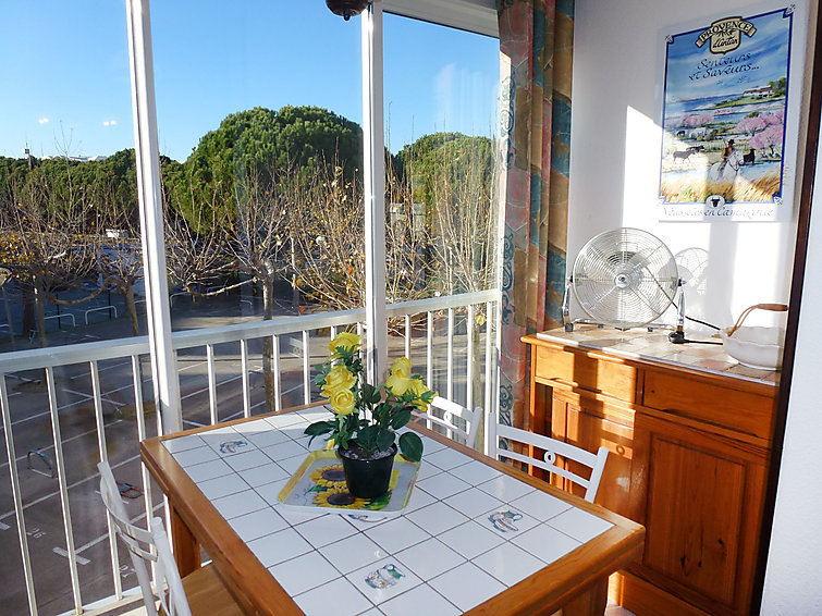 Residentie "Les Sables d'Or", van 4 verdiepingen. In de wijk le Palais de la Mer, 650 m van zee, 600 m van het strand. Parkeerplaats. Winkel 2 km, levensmiddelenwinkel 150 m, supermarkt 2 km, winkelcentrum, restaurant 150 m, centrum te voet bereikbaar in 20 minuten, bushalte "HLM" 550 m, treinstation 1.6 km, zandstrand "Plage nord" 600 m, openluchtzwembad 1 km, thermaalbad "Thalazur Port Camargue" 3 km. Jachthaven 1.5 km, zeilschool 1.5 km, midgetgolf 500 m, kinderspeelplaats 500 m. Attracties in de buurt: Seacquarium 500 m, Casino Flamingo, Arènes Grau du Roi 1 km, Aigues Mortes 6 km, La Grande Motte 12 km, Nîmes 52 km. Wandelgebied Réserve Naturelle de Camargue. Geen lift. De sleuteloverdracht vindt plaats bij het agentschap Interhome in Port Camargue. Nachtclub/disco 500 m van het huis. Vliegveld 24 km van het huis. Vergelijkbare accommodaties kunnen worden geboekt. Attractie-park (01/07-31/08) 600 m.