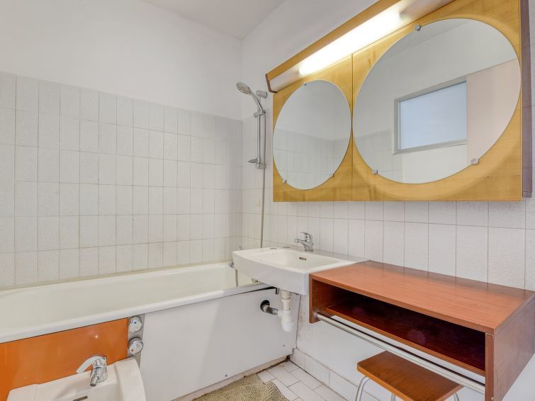 Appartement 2-kamers 41 m2 op de 1e verdieping. Woon-/eetkamer met 1 2-pers divanbed (140 cm, lengte 190 cm), TV (Flatscreen TV). Uitgang naar het terras. 1 kamer met 1 2-pers bed (140 cm, lengte 190 cm). Keuken (4-pits kookplaat, diepvriezer, elektrische koffiemachine, combimagnetron). Badkamer, bidet, aparte WC. Terras 9 m2, op het noorden gelegen. Terrasmeubelen. Ter beschikking: Internet (WiFi, extra). Parkeerplaats nr. 10. Rookmelders. Aanbod door een particulier volgens art. 155, IV van CGI. 30133001373WT