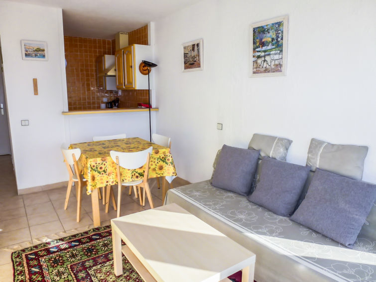 Appartement 2-kamers 36 m2 op de 2e verdieping. Woon-/eetkamer met 1 2-pers divanbed (1 x 130 cm, lengte 190 cm), TV en air-conditioning. 1 kamer met 1 2-pers bed (160 cm, lengte 200 cm). Uitgang naar het terras. (3 inductiekookplaten, magnetron, diepvriezer). Douche, aparte WC. Terras 15 m2, op het westen gelegen. Terrasmeubelen. Mooi uitzicht op zee. Ter beschikking: wasmachine. Internet (Internet (WiFi), extra). Parkeerplaats. Rookmelders.
