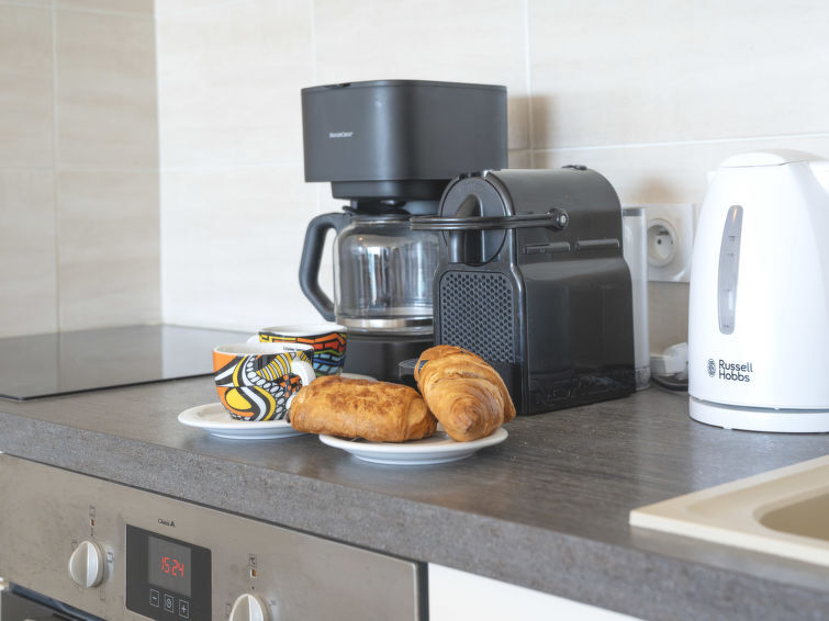 Appartement 2-kamers 44 m2 op de 8e verdieping, op het zuiden gelegen. Zeer comfortabel ingericht: woon-/eetkamer met 1 2-pers divanbed (160 cm, lengte 200 cm), TV (Flatscreen TV), elektrische verwarming en air-conditioning. 1 kamer met veranda met 1 2-pers bed (160 cm, lengte 190 cm), air-conditioning. Open keuken (oven, afwasmachine, 3 inductiekookplaten, broodrooster, waterkoker, magnetron, diepvriezer, elektrische koffiemachine). Douche, aparte WC. Elektrische verwarming. Klein terras 4 m2, op het zuiden gelegen. Terrasmeubelen. Zeer mooi uitzicht op zee en het landschap. Ter beschikking: wasmachine, strijkijzer, haardroger. Internet (Internet (WiFi), gratis). Parkeerplaats (1 Auto). Niet rokers woning. Rookmelders. Aanbod door een particulier volgens art. 155, IV van CGI. 30 04 503 039 356