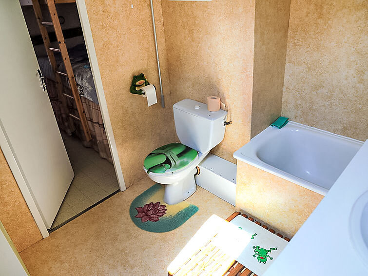 Appartement 2-kamers 38 m2 op de 1e verdieping. Doelmatig ingericht: woon-/eetkamer, met afgeschuinde daken met TV. 1 kamer met afgeschuinde daken met 1 2-pers bed (140 cm, lengte 190 cm). Slaapnis met 1 x 2 stapelbedden (90 cm, lengte 190 cm). Kookhoek in de hal (2-pits kookplaat, mini-oven, magnetron). Bad/WC. Elektrische verwarming. Ter beschikking: wasmachine. Rookmelders. Rookmelders. In plaats van een afgesloten slaapkamer bevinden sommige slaapgedeeltes zich in een open ruimte (galerij, nis, etc.).