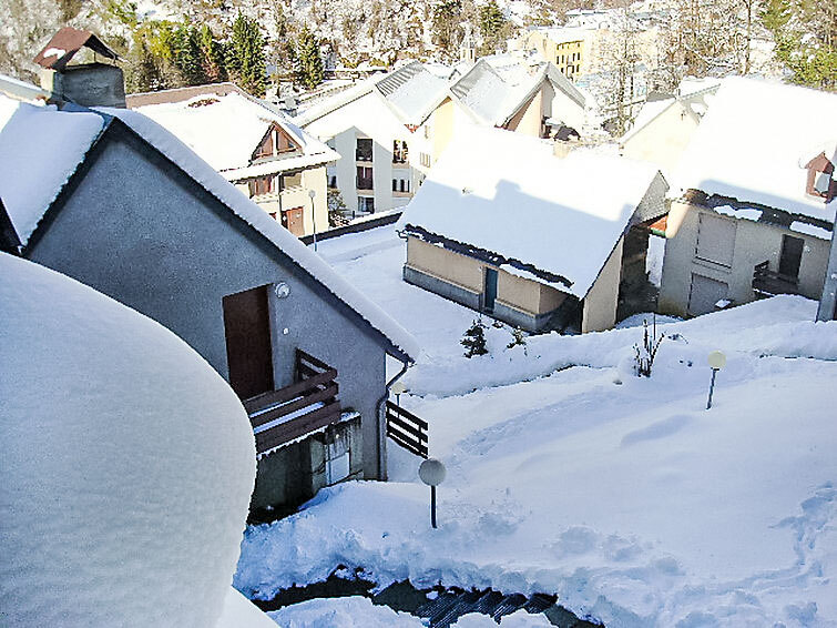 Vakantiepark "Les Marmottes", bouwjaar 1981. Boven Barèges, buiten de plaats, rustige ligging tegen een helling, te midden van groen. In het huis: berging voor ski's. Toegangsweg (bergweg). In de winter sneeuwkettingen aanbevolen. Trappenweg (96 treden) naar het huis. Overdekte parkeerplaats. Winkel, levensmiddelenwinkel, restaurant, bushalte 500 m. Skilift 3 km, skischool 500 m. Auto noodzakelijk. Toegang tot de residence via trappen.