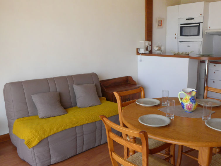 Appartement 2-kamers 43 m2 op de 2e verdieping, op het noorden gelegen. Woon-/eetkamer met 1 2-pers divanbed (140 cm, lengte 190 cm), TV (Flatscreen TV), elektrische rolluiken. Uitgang naar het balkon. 1 kamer met 1 2-pers bed (140 cm, lengte 190 cm), elektrische rolluiken. Uitgang naar het balkon. Open keuken (afwasmachine, 3 keramische glas kookplaten, broodrooster, waterkoker, elektrische koffiemachine, combimagnetron) met bar. Douche/WC. Parketvloeren. Balkon 3 m2, balkon 5 m2. Ligstoelen (2). Uitzicht op zee. Ter beschikking: wasmachine, strijkijzer. Internet (Internet (WiFi), extra). Rookmelders.