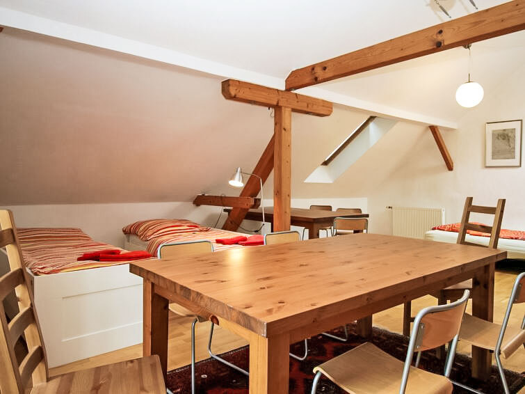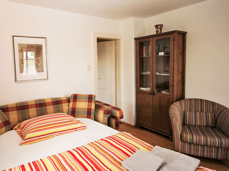 "kleine Winten", halfvrijstaand huis 3-kamers 100 m2. Gedeeltelijk afgeschuinde daken, gezellig ingericht: woonkamer met 1 2-pers divanbed, Sat-TV en stereo-installatie. Uitgang naar het terras. 1 2-pers. kamer. Woonkeuken (oven, afwasmachine, 4 keramische glas kookplaten, magnetron, elektrische koffiemachine) met eethoek. Douche, aparte WC. Bovenverdieping: groot, open 50 m2, Studio met dakraam met 4 bedden en eettafel. Klein terras, op het zuiden gelegen. Terrasmeubelen, ligstoelen. Mooi uitzicht op het landschap en het bos. Parkeerplaats bij het huis. Niet rokers woning. 1 klein huisdier/hond toegestaan. Privé ingang.