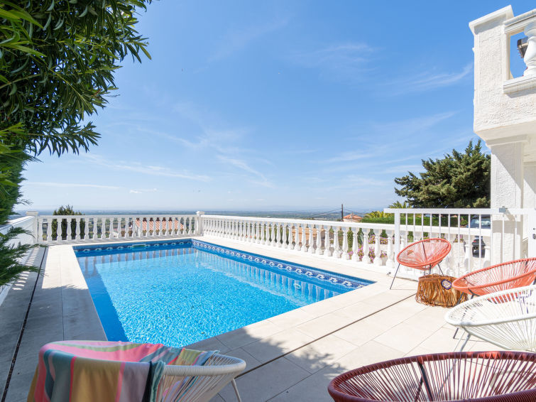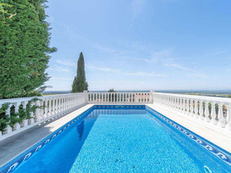 Groot, moderne, gezellige villa "Panorama", van 2 verdiepingen. In de plaats Palau Savardera, 8 km van het centrum van Roses, rustige, zonnige ligging villa wijk, gebied met weinig verkeer, 7 km van zee, 7 km van het strand, op het zuiden. Voor alleengebruik: groot tuin op verschillende niveaus (omheind) met planten en bomen, openluchtzwembad hoekig (8 x 4 m, 100 - 200 cm diepte, seizoensgebonden beschikbaarheid: 01.Mei. - 30.Okt.) met trap. Terras, tuinmeubelen, barbecue, parkeerplaats (voor 3 auto's) op het terrein. Levensmiddelenwinkel 3 km, supermarkt 3 km, restaurant, bar, café 500 m, bushalte "Moventis estació bus Roses" 8.8 km, treinstation "Estación Tren Vilajuiga" 6 km, zandstrand "Roses" 9 km. Jachthaven 9 km, golfterrein (18 holes) 12 km, zeilschool 9 km, tennis 3 km, manege 5 km. Attracties in de buurt: Zona de padel con bar y restaurante 500 m, Parque Acuático Roses Aquabrava 3 km, Túnel del viento y Skydive Empuriabrava 12 km, Cadaqués 17 km, Museo Dalí Figueres 22 km, Castillo y festival de Perelada 15 km. Auto noodzakelijk. Groepen jongeren uitsluitend op aanvraag. De sleuteloverdracht vindt plaats bij het agentschap Interhome in Empuriabrava.