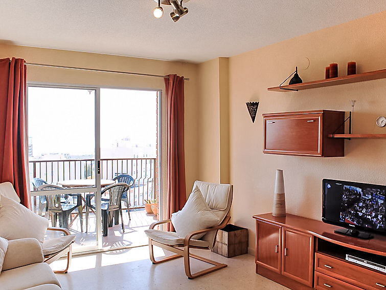 "Las Cinco Torres", appartement 3-kamers 60 m2 op de 7e verdieping. Ruim en licht, eenvoudig en doelmatig ingericht: woon-/eetkamer 25 m2 met Digitale TV en ventilator. Uitgang naar het terras. 1 kamer 8 m2 met 2 bedden (90 cm, lengte 190 cm), ventilator. 1 kamer 11 m2 met 1 2-pers bed (150 cm, lengte 190 cm), ventilator. Keuken 9 m2 (4-pits kookplaat, oven, broodrooster, waterkoker, magnetron, diepvriezer, elektrische koffiemachine). Bad/WC. Elektrische verwarming. Klein terras. Terrasmeubelen. Beperkt uitzicht op zee en de plaats. Ter beschikking: wasmachine, strijkijzer. Internet (WiFi, gratis). Parkeerplaats nr. S/N bij het huis. 1 klein huisdier/hond toegestaan. VT-432125-A // Reg. Nr.: ESFCTU00000305600016919000000000000000000VT-432125-A8